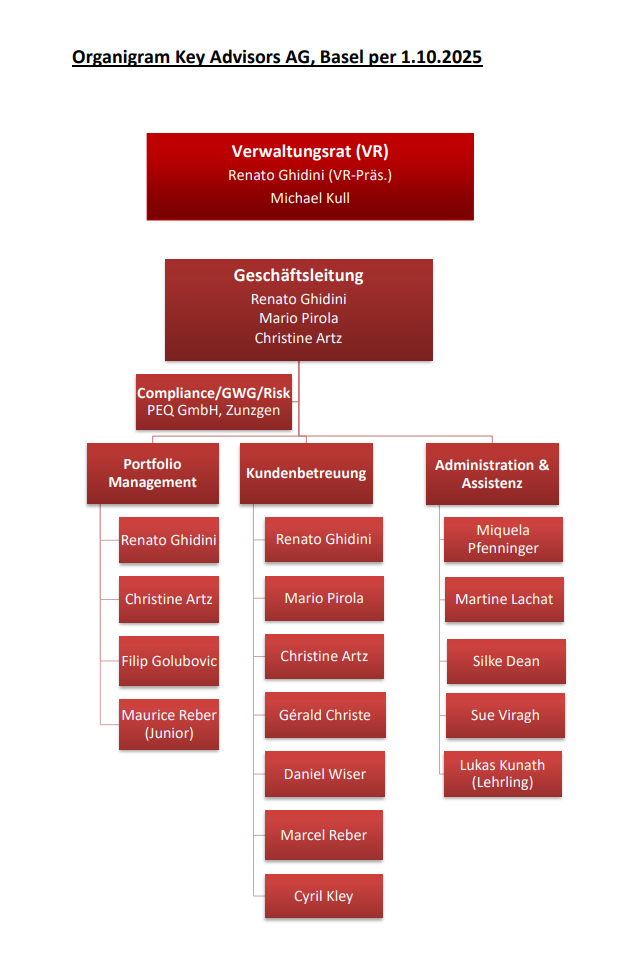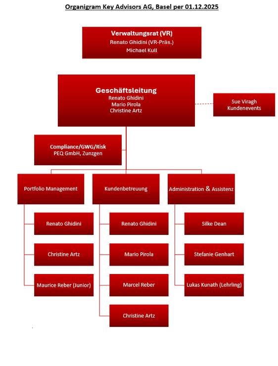 Untenstehend finden Sie ein aktuelles Organigramm der Key Advisors AG: